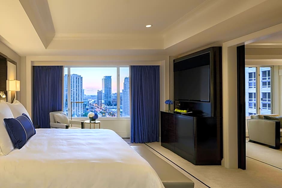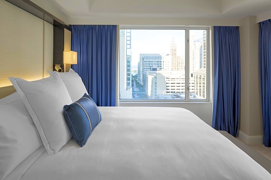 Featuring city views, this room also offers a 55-inch flat-screen cable TV, a built-in beside charging station and tablet technology to control the room temperature and lighting. The marble bathroom includes a soaking tub and in-mirror TV.